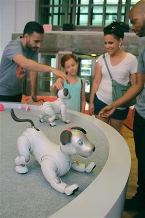 ソニーの施設に展示された家庭用犬型ロボット「aibo」=8月、ニューヨーク(共同)【拡大】