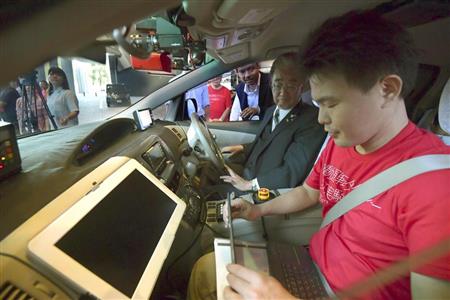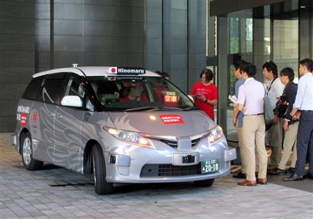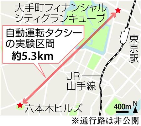 実験はタクシー大手の日の丸交通(東京)と自動運転ベンチャー企業のZMP(同)が行った。都が両社に1千万円を補助している。運転席には緊急時に備えて日の丸交通の運転手が座るが、ハンドル操作やアクセル、ブレーキは自動運転。トヨタ自動車のミニバン「エスティマ」をベースに、ZMPの自動運転システムを搭載した。