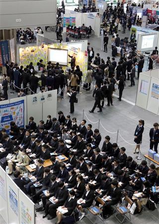 就職活動が解禁され、各企業のブースに集まる学生たち=3月【拡大】