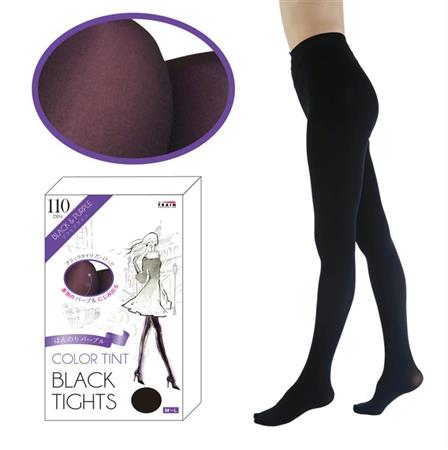 表地の黒色と透けてみえる裏地のカラーが合わさって、絶妙な発色を実現。110デニールの暖かさを備えながらも段階式着圧設計で脚を引き締める。各1000円(税別)。販売中。