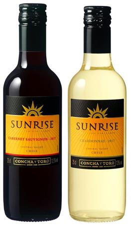 新たに飲みきりサイズとして、容量250ミリリットルを追加。チリ産のワイン「サンライズ」(486円前後)など3つのブランド、それぞれ赤・白で展開する。販売中。