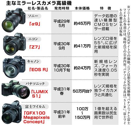 投入するのは「ルミックスS」シリーズの2機種。強みである映像処理技術を生かして高精細な4K画質の動画を撮影できるのはもちろん、被写体に合わせる高い操作機能や堅牢(けんろう)性も兼ね備える。ニコンが9月28日発売した「Z7」(想定税込価格44万円)を上回る値付けとなる見込みだ。