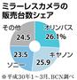デジタルカメラ市場が低迷する中、好調なミラーレス一眼カメラで各社が高価格帯へシフトしている。ソニー、パナソニック、オリンパスに加えて、この分野で出遅れていた業界2強のニコン、キヤノンが近く参入する。ミラーレスは反射鏡がないため、一眼レフに比べて小型で軽量。技術の進歩で弱点も解消されつつあることから、一眼レフカメラから切り替えるプロカメラマンも増えており、高価格帯にも勝算を見いだしているようだ。