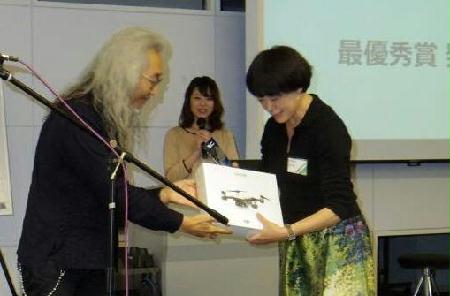 デジタルハリウッド大学の杉山知之学長(左)から最優秀賞の表彰を受ける大洞博美さん【拡大】