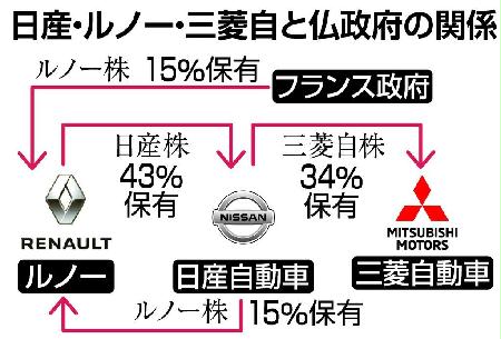 両社の経営統合をめぐっては、ルノー筆頭株主のフランス政府が求めているとされてきた。ゴーン容疑者は10月初旬、パリでインタビューに対し三菱自動車を含めた3社連合の資本構成見直しに関して「今は根回しの段階だ」と説明していた。(共同)
