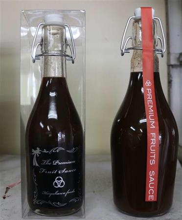 栃木県産のフルーツをふんだんに使い、限定商品として発売される早川食品の高級ソース「プレミアムフルーツソース2018」。ワインのような瓶に専用化粧箱もあり、存在感が漂う。