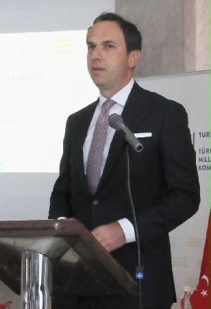 講演するトルコのバイラクタル・エネルギー天然資源副大臣=11月15日、東京都渋谷区の在日トルコ大使館【拡大】