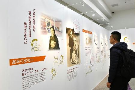 日清が大阪府池田市と横浜市で運営する「カップヌードルミュージアム」では3月末まで特別企画展「チキンラーメンの女房 安藤仁子展」を開催し、休日を中心に多くの人でにぎわう。百福さんを支えた仁子さんに脚光を当て、生前のインタビュー映像や写真、手帳などを展示。ドラマでは仁子さんをモデルにした福子が働くホテルで夫となる立花萬平と運命的な出会いを果たす場面が描かれたが、企画展でも仁子さんが電話交換手の資格と得意の英語を生かして京都市内のホテルに就職し、百福さんとの結婚につながったエピソードが紹介されている。