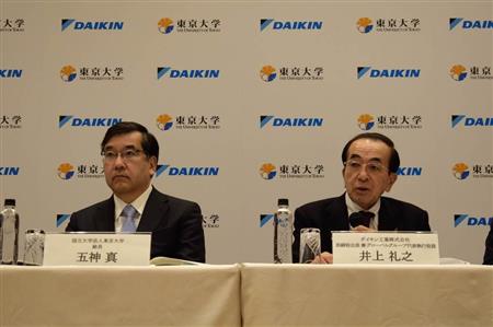 昨年12月中旬の東京大学。東大の五神真(ごのかみ・まこと)総長と産学連携協定の記者発表の場に立ったダイキンの井上礼之(のりゆき)会長はこう強調した。ダイキンは10年間で毎年10億円を拠出、その半分を東大関連のベンチャー企業の支援に充てる。
