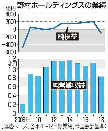 処理の内訳は、19年に買収した電子証券取引仲介会社の米インスティネットが約670億円、リーマンが約140億円。北村巧財務統括責任者は31日の記者会見で、「(リスクを取って収益を稼ぐ)伝統的なビジネスモデルが限界に達していることなどから、のれん代を全額減損することにした」と説明した。