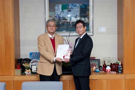 臨席した山内修一副知事は、長年にわたり開催してきた全国車いす駅伝競走大会がその功績を認められ、今年から『天皇盃』を冠することとなったと報告。財団の継続した支援に謝辞を述べるとともに引き続きの協力を願った。同大会は、1982年に京都府綾部市を会場として開かれて以来、34回目。今年は3月10日の開催を予定している。