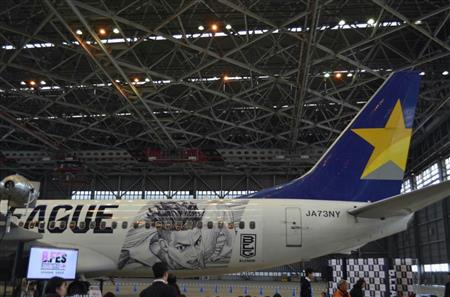 サービス スカイマークに「B.LEAGUE」特別塗装機 2019.3.5 06:27 print mail スカイマークは4日、「ジャパン・プロフェッショナル・バスケットボールリーグ(B.LEAGUE)」と連携した特別塗装機「B.LEAGUE JET」を運航すると発表した。5日から来年9月までの予定。4日、東京・羽田空港のスカイマーク格納庫で同機を報道陣に公開した。ボーイング737-800型機1機に人気バスケ漫画「スラムダンク」の作者である井上雄彦氏によるイラストが描かれ、機内にはオリジナルのヘッドレストカバーを設置している。