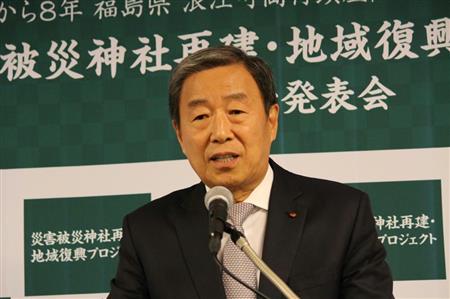 住宅メーカーの創建(大阪市中央区)は7日、東日本大震災で被災、倒壊した福島県浪江市の諏訪神社を無償で建築して寄贈すると発表した。神社仏閣の建て替え事業を通じて社会貢献を行うとともに、地震に強い木組み工法を持つ同社グループの認知度を高めるのが狙い。同社はすでに昨年、熊本地震で被災した白山姫神社(熊本県西原町)を無償で寄贈しており、今回の諏訪神社が第2弾。会見した吉村孝文会長は「今後、毎年1棟のペースで被災した神社を無償で寄贈していき、災害に強い木造建築を日本に広めていきたい」と話した。