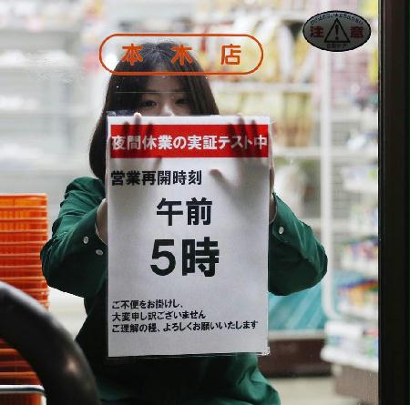 公開されたのは東京都足立区の直営店「セブン-イレブン本木(もとき)店」で、営業時間を午前5時~翌日午前1時にして実験。同店は22日午前1時に消灯後、駐車場も閉鎖された。近くに住む男性(29)は「深夜によく利用してきただけに不便になる」と困惑する。