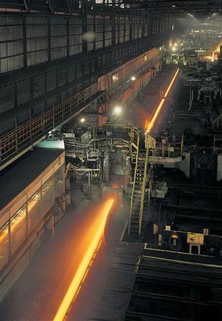 「高速鉄道用のレールもあれば、重い荷物を積んだ貨物鉄道向けもある。品質に失敗は許されない」。八幡製鉄所(北九州市)軌条工場。世界最長の150メートルのレールを造れる圧延機を前に、形鋼部の村松恭行主幹は言う。国内シェアの約8割を握る鉄道レールを年50万~60万トン生産し、うち約40万トンを輸出する。