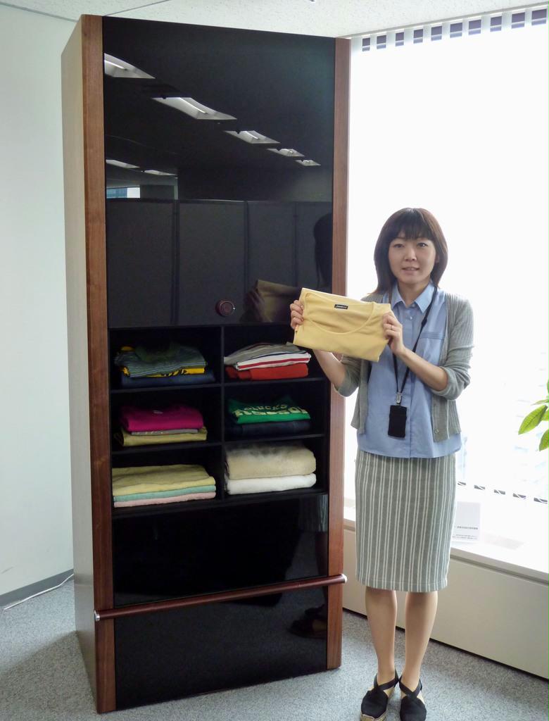 ランドロイドは投入口に乾いた衣類を投入すると、画像解析したうえでアームで衣類をたたんでくれるロボット。資本業務提携先となるパナソニックや大和ハウス工業との共同開発で、平成29年5月の製品発表会では同年度中に185万円(税別)で発売する予定だった。