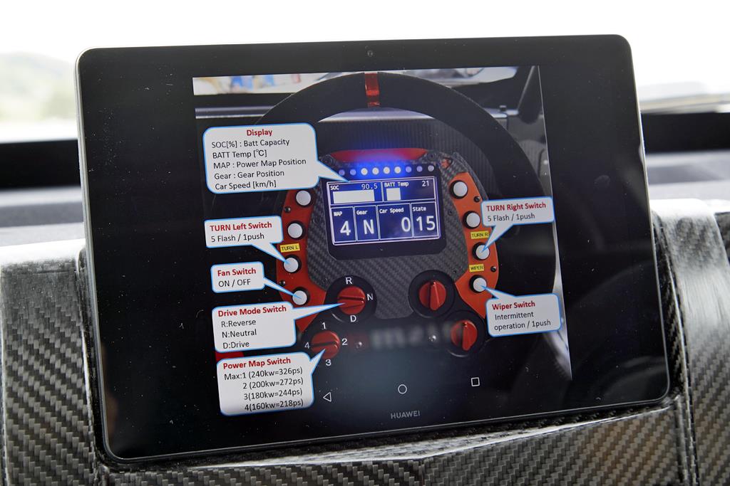 だがしかし、レースの面影をリーフにのせただけの安易な造り込みではまったくない。今すぐにでも実戦参加できそうな段階まで追い込んでいる。モノコックは東レ製のカーボンモノコックであり、サスペンションはプッシュロッド式である。たとえていえば、ル・マン24時間で総合優勝するマシンと同格の、本格的なレース用レイアウトを採用するのだ。魅せるだけではなく勝つためのマシンなのだ。