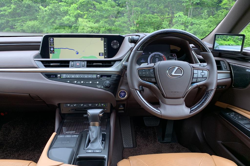 ESは1989年のレクサス創設時に、フラッグシップセダン「LS」とともに“初期メンバー”として誕生した。以来、フルモデルチェンジのたびに進化を遂げてきたが、日本導入は昨年10月に発売された今回主役の7世代目モデルが初めてとなる。ちなみにESはレクサスのセダンで唯一の前輪駆動車(FF)だ。試乗車は上級グレードの「version L」。日本に投入された「ES300h」のパワートレインは2.5リッターエンジンにモーターと無段変速機(CVT)を組み合わせたハイブリッド車(HV)だ。言わずもがな、HVシステムによる発進は静かでスムーズ。アクセルをぐっと踏み込むとエンジンの介入が大きくなり、変速ショックとは無縁のCVTらしい直線的な加速を見せる。