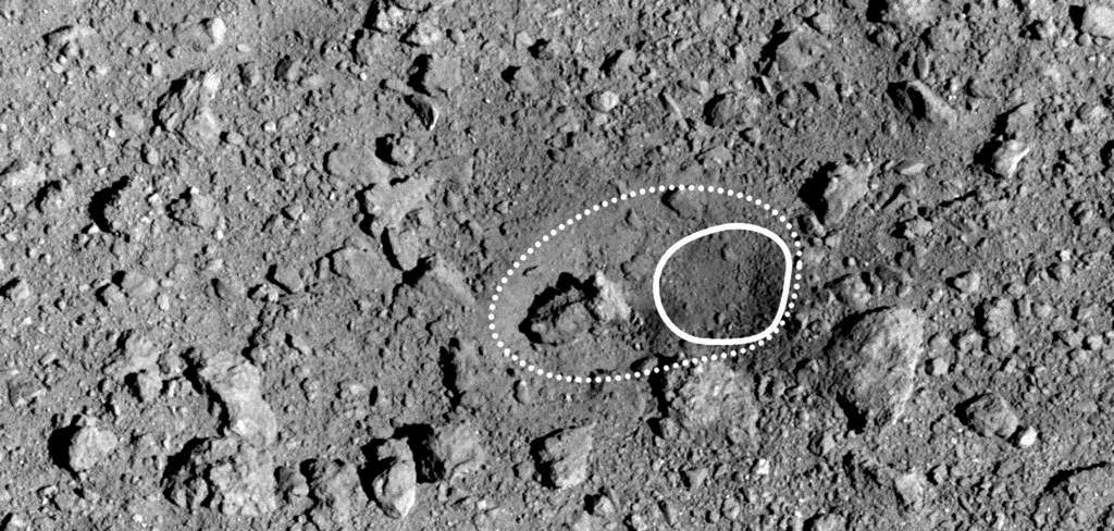 探査機「はやぶさ2」が小惑星「リュウグウ」の地表に作製した人工クレーターに「おむすびころりんクレーター」の愛称をつけたと宇宙航空研究開発機構(JAXA)が22日、発表した。