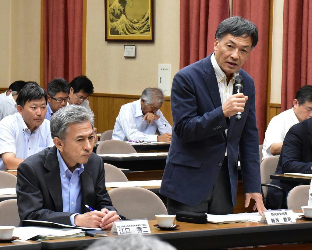 これに対し、難波喬司副知事は「湧水の全量を大井川に戻せないのであれば、こういう工法で検討するわけにはいかない。県としては全く受け入れられない」と語気を強めて再考を求めた。専門家委員からも「流出する期間と総量を明記してほしい」などの要望が出された。