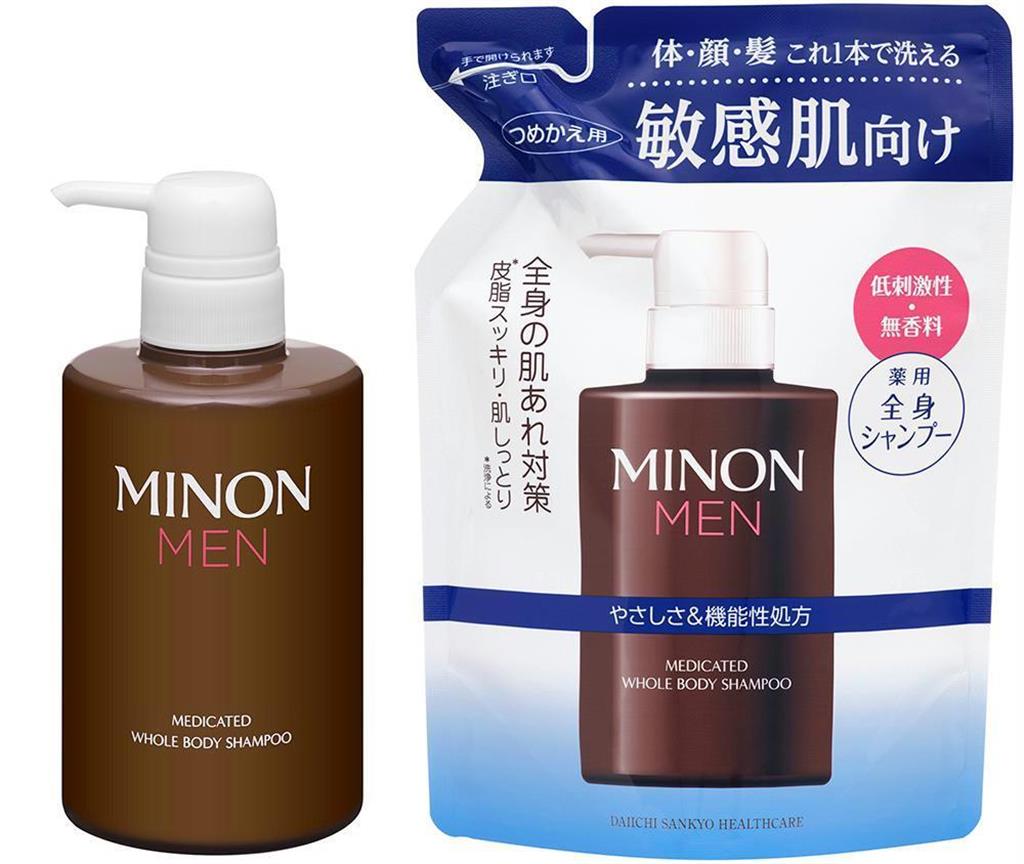 新商品 第一三共ヘルスケア「ミノン メン 薬用全身シャンプー」 2019.9.19 05:00 print mail 男性の敏感肌向けのボディーケアライン。1本で体・顔・髪を洗えるオールインワンの洗顔料。本体400ミリリットルは1404円前後。詰め替え用は864円前後。20日発売。 第一三共ヘルスケア「ミノンメン薬用全身シャンプー」 0120・337336 www.minon-men.jp