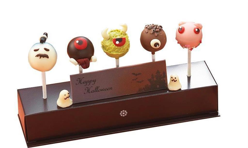 1階にある「ショコラブティック レクラ」のハロウィーン限定のチョコレート。同店に住みつくオバケをイメージしてデザインを考案。ユニークな5種類のオバケをチョコレートポップで表現。カラフルでかわいらしい表情とともに、キャラクターに名前を付け、オバケが繰り広げるハロウィーンパーティーの世界観が楽しめるようにした。
