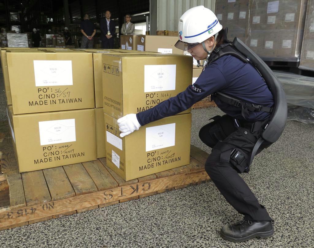 24日には輸入された荷物を木製パレットの上に次々と運ぶ様子が報道陣に公開された。作業員の井上育子さん(39)は「これまではコルセットを腰に巻いていたが、着けなくても楽に荷物を運べる」と話した。