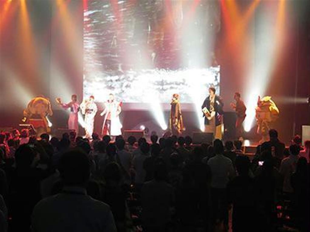 会場前では、午後4時半の開場の数時間前から多数のファンが続々と集まり、11年目を迎える花慶の日イベントへの思いを募らせた。このイベントは、原哲夫氏による人気漫画「花の慶次」をモチーフにした同社の人気機種「花の慶次」シリーズにおけるファンへの感謝を込めて毎年開催されるイベントで、昨年からはパチンコファン拡大に向け、遊技未経験者と一緒に参加して盛り上がれる要素を盛り込んだ“連れ慶”として開催されている。