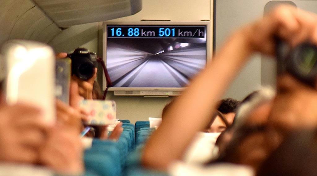 JR東海が令和9年の品川-名古屋間開業を目指すリニア中央新幹線の報道関係者向け試乗会が3日、計画路線をそのまま使った実験線(山梨県上野原市-笛吹市、42・8キロ)で行われ、営業運転を想定した実験用車両「L0(エルゼロ)系」を記者が体験した。