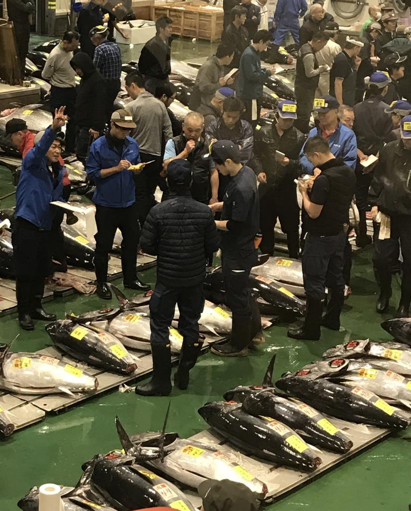 米シアトルから訪れたというIT関連会社員、ロブ・ランディスさん(38)は「大量のマグロが1カ所で競り落とされる様子を見るのは圧巻。会場の熱気に驚いている」と興奮気味だ。