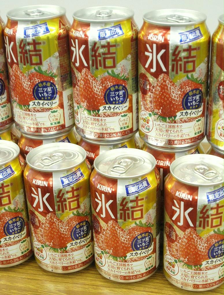 キリンは例年、冬季にイチゴ果汁の「氷結」を売り出しており、栃木産イチゴを使うのは平成28年の「とちおとめ」に続き2回目。今回のスカイベリーは24年に出荷が始まった比較的新しい品種で、甘みと酸味のバランスや、豊かな香りが特徴。同社は台風の被害前に果汁を確保しており、当初予定通りに発売する。