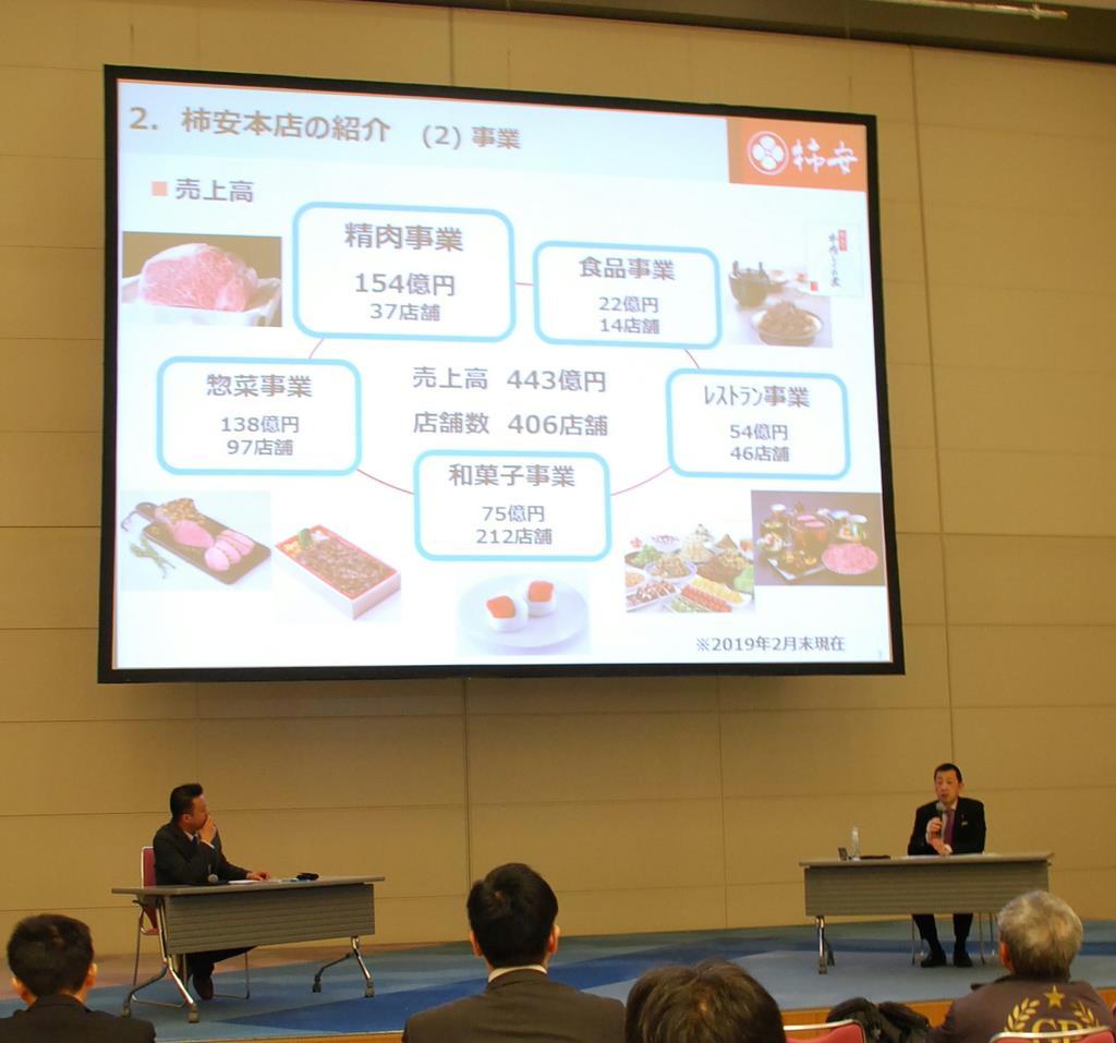 セミナーでは、同協会副会長で総菜や精肉事業を展開する柿安本店(三重県桑名市)の赤塚保正社長と、同サミットを主催する日本ジビエ振興協会の藤木徳彦代表理事が対談した。