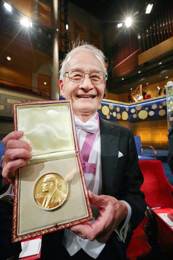 授賞式では、ホールの舞台上で他の受賞者や王族とともに着席。妻久美子さん(71)ら1500人以上が客席から見守った。業績が紹介されると、吉野さんは中央に進み、国王からメダルと賞状を手渡され握手。ファンファーレが鳴り響いた。(ストックホルム 共同)