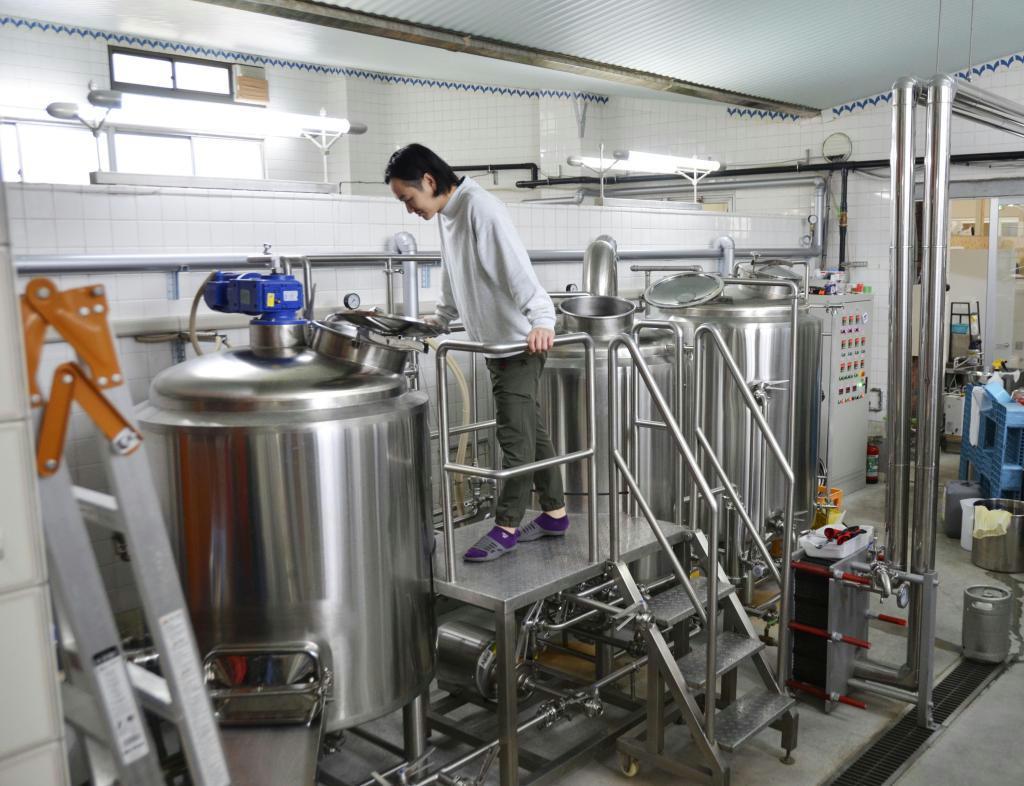 醸造に適した環境だと気付いたのは、その後のこと。湿気に強いサウナは、害虫などの侵入を防ぎ、原料の麦芽を粉砕する場所に。浴場には大量の水が使える太い配管や、計3トン超のタンクを置ける頑丈な床が備わっていた。「配管や補強工事は不要で、金銭面でも設備面でもメリットの方が大きかった」と志方さん。今年7月に開業した。