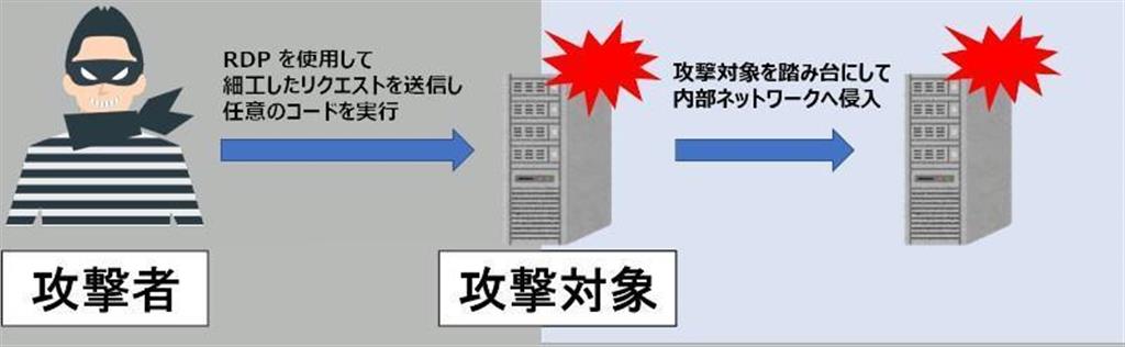 具体的には、2019年5月にマイクロソフトから報告された、リモートデスクトップサービスの脆弱(ぜいじゃく)性(CVE-2019-0708)を悪用した攻撃を観測している。同脆弱性を悪用されると、認証されていない遠隔の攻撃者がリモートデスクトッププロトコル(RDP)を使用して細工したリクエストを送り、任意のコードを実行される可能性がある。