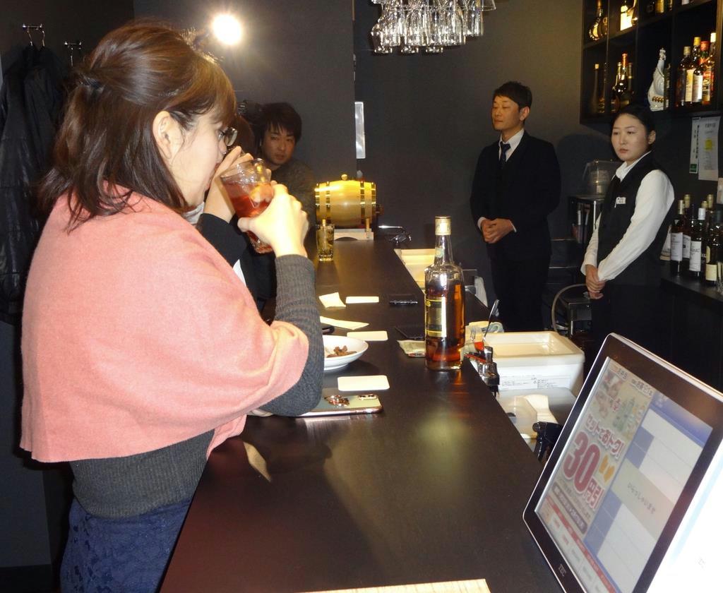 八丁堀店でも同様のシステムを採用しており、250種400本のウイスキーやブランデーを常備。大学生や若い女性のほか、外国人観光客、オールドボトルを懐かしむ中高年層もターゲットにしているという。