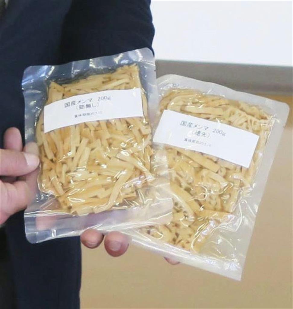 7年前、若山太郎社長(51)に市内のラーメン店から「国産メンマを作れないか」と相談があった。流通するメンマの原料はほぼ全てが中国からの輸入品。商品化のパートナーで、国内シェア4割の「丸松物産」(東京)によると、多様化するラーメン業界で国産品の需要は高く、約4万トンある流通量の10~15%を国産にする目標を掲げる。