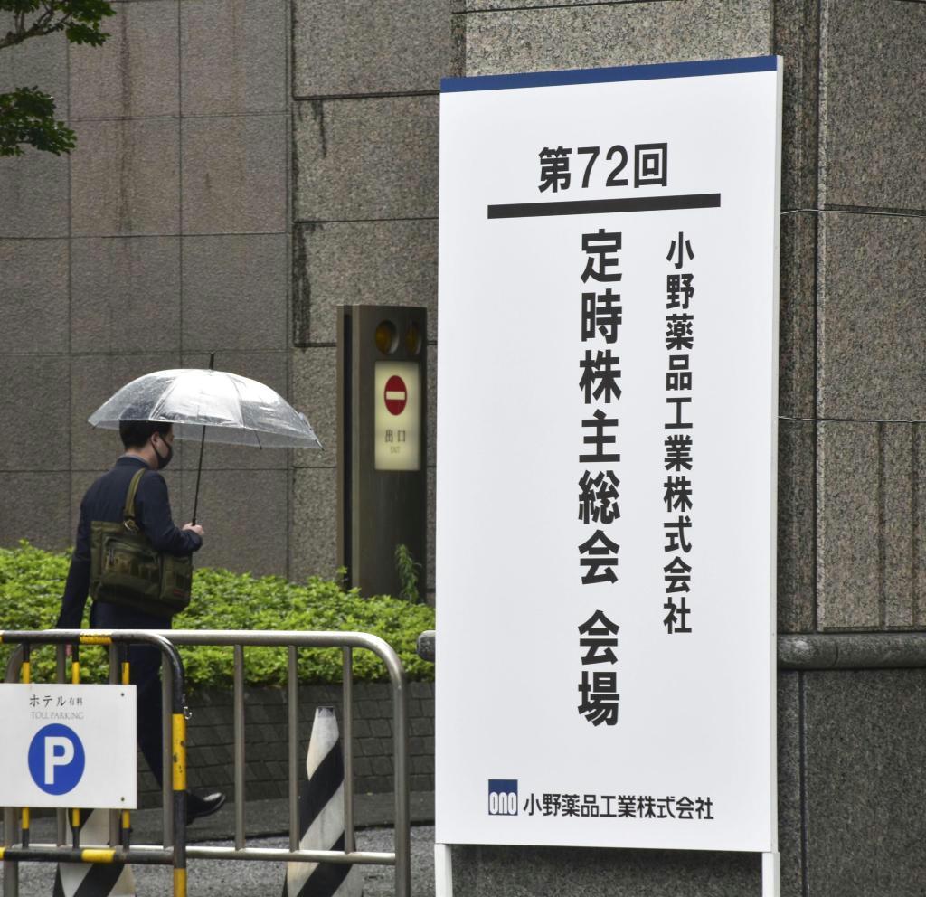 小野薬品は今回、新型コロナウイルス感染拡大防止のため人数制限を設けて総会を実施。前年より433人少ない120人の株主が出席した。