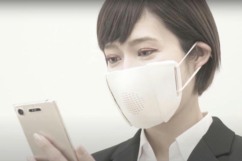 同社は音声を認識するマイクを搭載した「スマートマスク」を開発した。市販のマスクの上を覆うようにして装着するものだが、通信機能も備わっており、話した内容が相手のスマートフォンの画面に表示される。