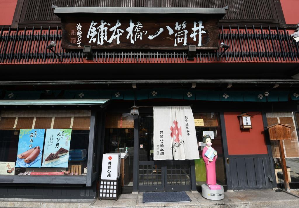 検校説は江戸時代に京都で活躍した盲目の筝曲家、八橋検校をしのび、琴の形を模して作られたとするもの。井筒側はこの説に立ち、自らの創業を文化2(1805)年とする。