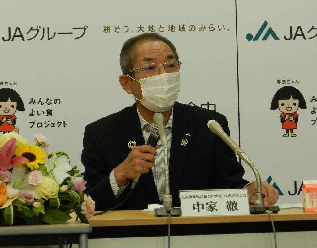 全国農業協同組合中央会(JA全中)の中家(なかや)徹会長は9日の記者会見で、今月3日に開票が行われた次期会長選の結果、自身の再任が内定したことについて「新型コロナウイルス感染症で先行きが不透明な中、JAの経営基盤の確立・強化が重要な課題で、全力を傾注したい」と抱負を述べた。次期会長選で中家氏はJA徳島中央会会長の中西庄次郎氏に競り勝った。