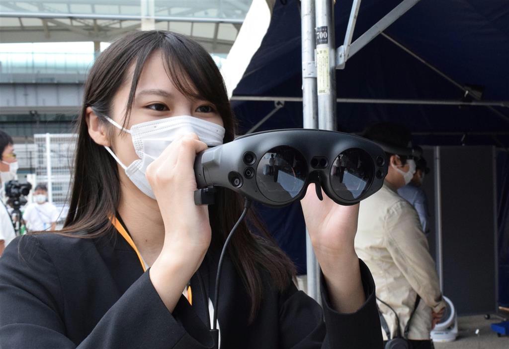 NTTドコモは13日、現実の風景にデジタル映像を重ね合わせて投影する複合現実(MR)技術を使って仕事やゲームができるゴーグル型端末「マジックリープ1」の体験会を開いた。JR東日本が高輪ゲートウェイ駅前で9月6日まで開催しているイベント内で体験できる。イベント会場周辺に第5世代(5G)移動通信システムのアンテナを設置し、映像データの送信などに活用している。