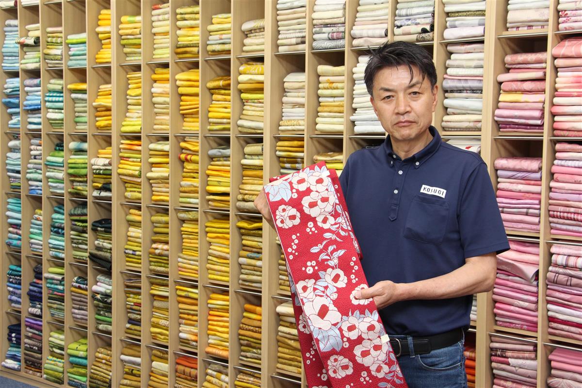 もともと国内で着物を着る機会が減り市場が縮小傾向にある和装業界。昭和50年代には、浴衣帯のデザイン性を生かして米国向けにベルトを製造。和服には邪道とされた化繊のポリエステルもいち早く採用し、安価で扱いやすい特徴で若者向けに注力した。平成になり中国製が勢いを増すと、製造機械を新調して、生産性を大幅に高めることで安さに対抗した。
