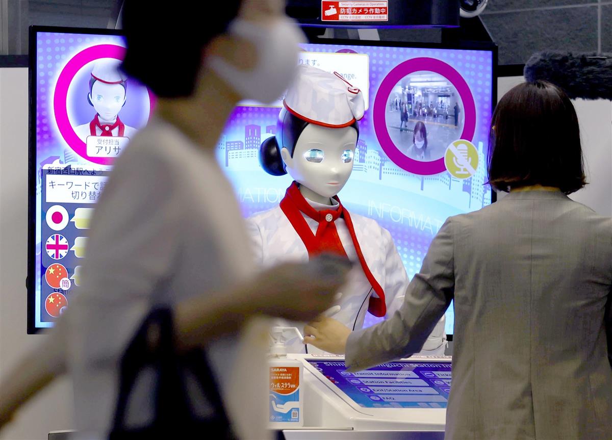AI(人工知能)を搭載したロボットが道案内する東京都の「ロボットコンシェルジュ」が14日、都営地下鉄大江戸線の新宿西口駅と浅草線の新橋駅でデビューした。来夏に東京五輪・パラリンピックを控え、日英中の3カ国語で、利用者に情報提供する。