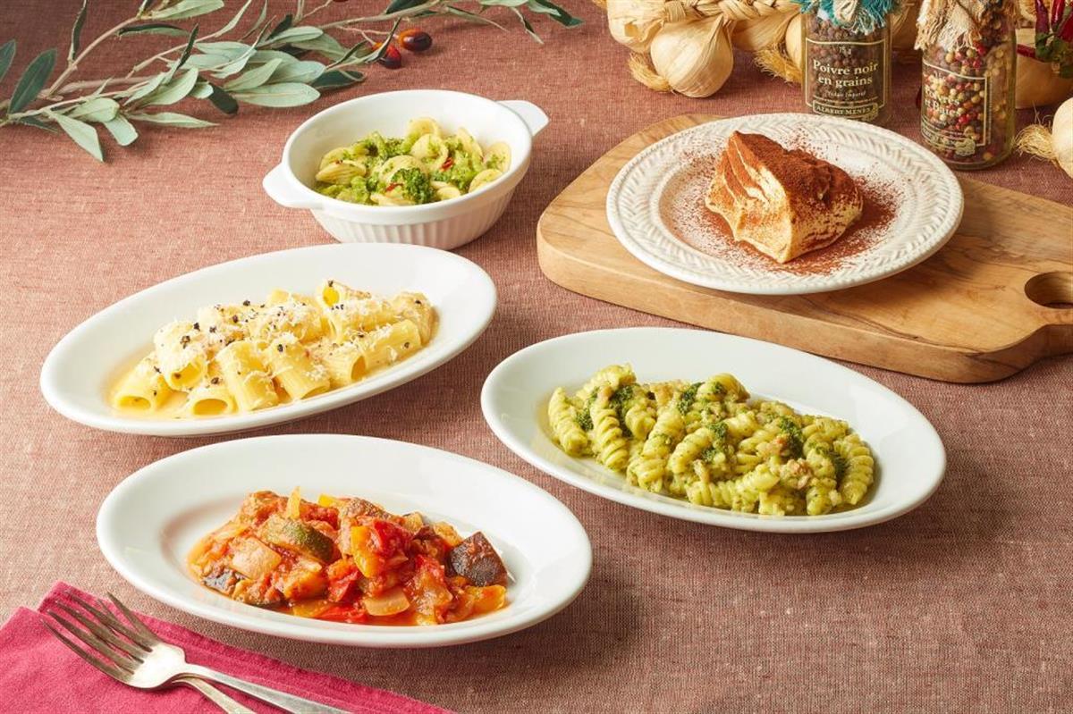 自社のセントラルキッチンで作った料理を急速冷凍することでおいしさをそのまま閉じ込め、湯煎や自然解凍などで簡単に家庭でもレストラン品質の味が楽しめる。シェフが出合ったイタリア各地域のパスタの味わいを再現したショートパスタは、「リガトーニ~ローマ風カルボナーラ~」(540円)「オレキエッテ~ブロッコリーとアンチョビのソース~」(540円)「フジッリ~魚介のラグー バジル風味~」(600円)の全3種。南イタリアの伝統料理「カポナータ」(540円)、ロイヤルデリ初のデザート「Tirames●(ティラミス)」(680円)も用意。まるでイタリア中を旅するような気分が味わえるメニューに仕上げた。公式サイトなどで販売中。
