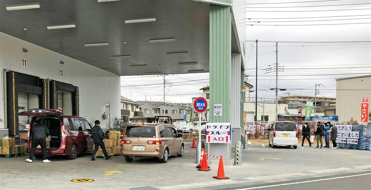 客は車から降りる必要はなく、注文を受けた販売員がトランクに商品を積み込む。16、17両日に八潮市の物流倉庫で開いた際は、約20種類の野菜を1セットとして3500~5000円で販売し、2日間で500セット以上を売り上げた。