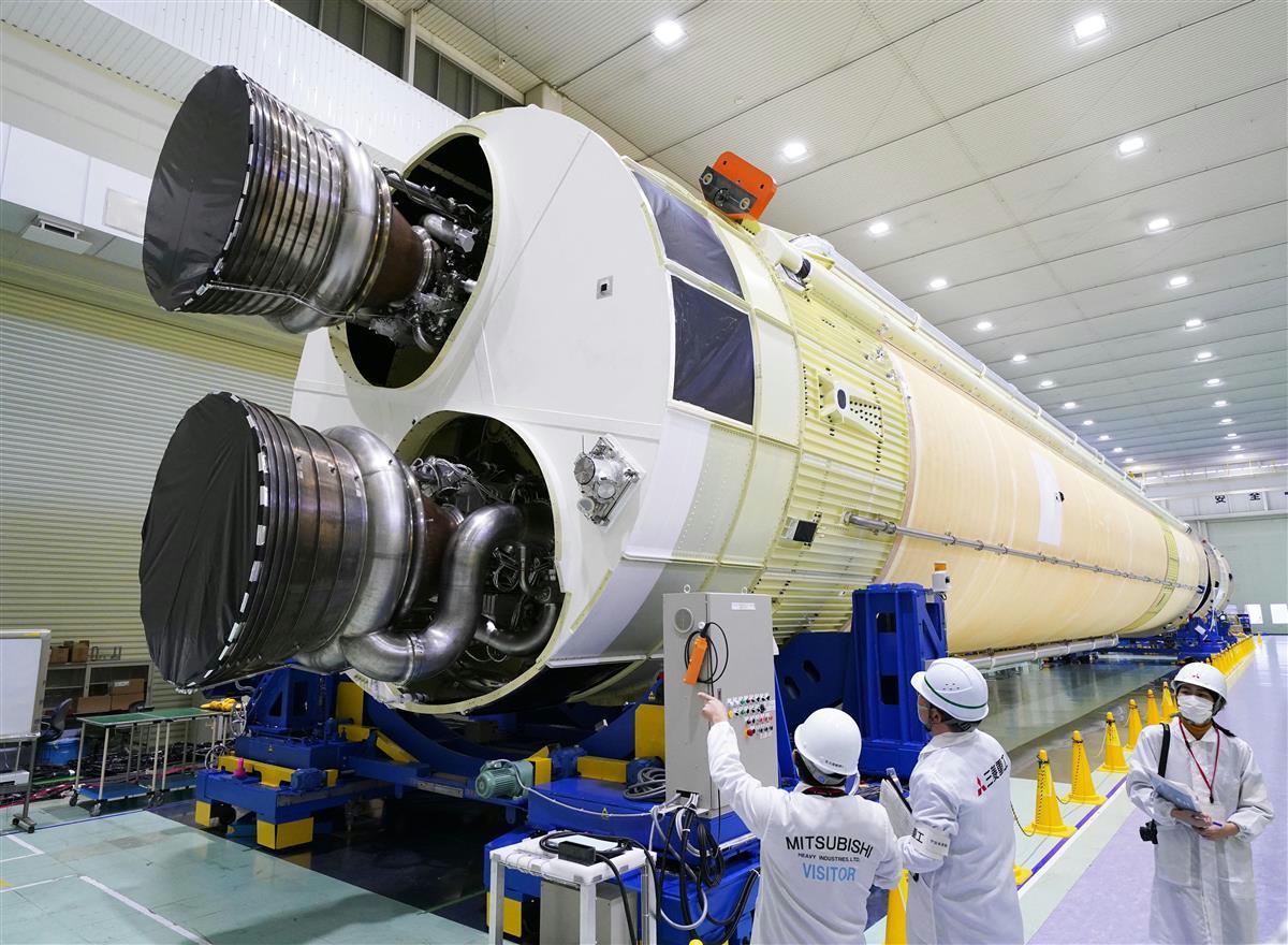 公開したのは直径5・2メートル、全長63メートルの機体の中心部分で、2基の主エンジンを搭載する1段目(約37メートル)と2段目。26日に搬出し、宇宙航空研究開発機構(JAXA)の種子島宇宙センター(鹿児島県)に運んで組み立て作業に入る。