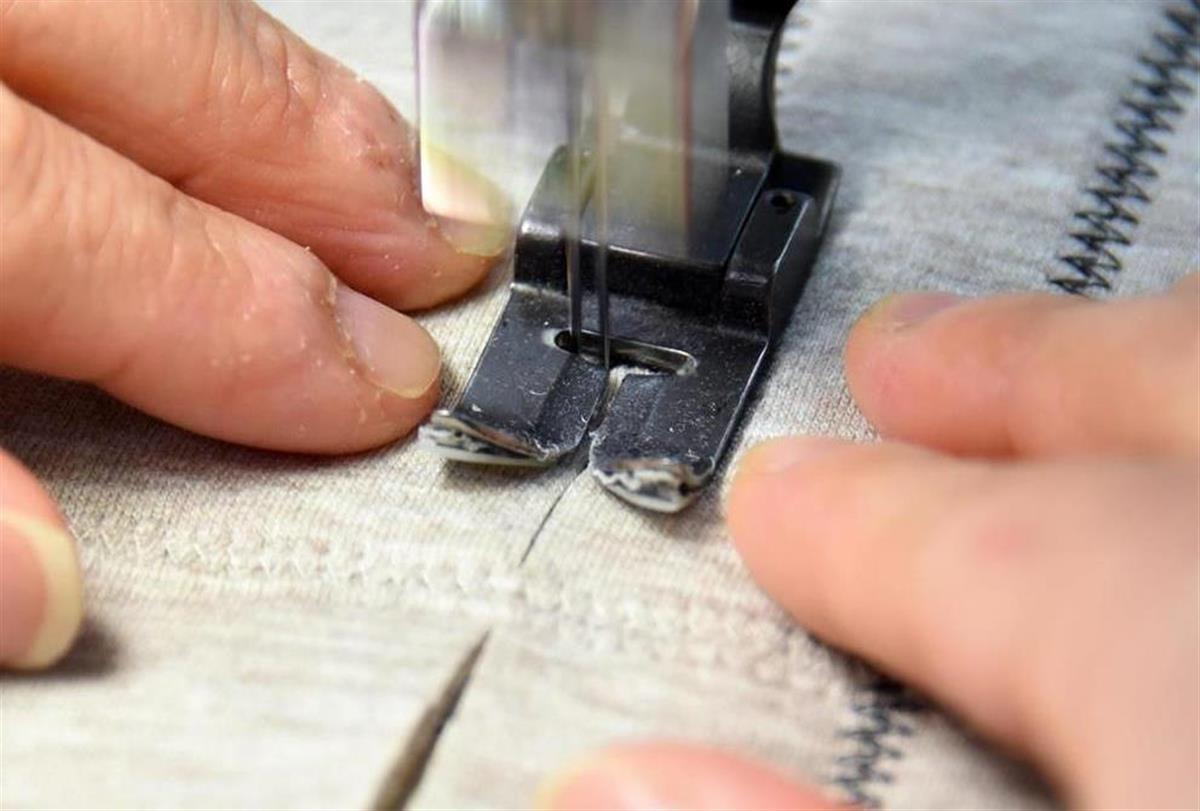 裁断された生地を、今度は職人が縫い合わせる。同社では、2本の針の特殊なミシンで、生地を重ね合わせずジグザグに縫う「突き合わせ技法」を採用。縫い代がない分、仕上がりは軽く、滑らかだ。