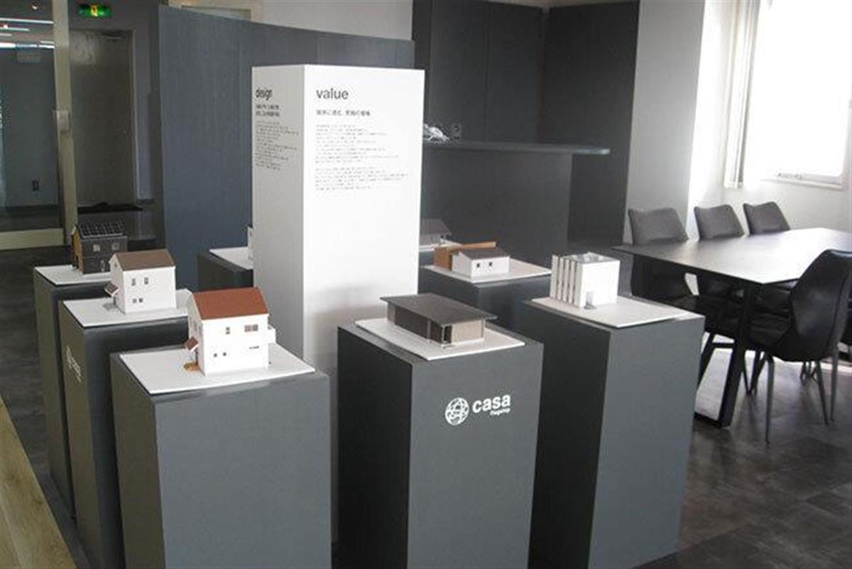 和歌山城の北側にある本社8階に設けたショールームではカーサ和歌山の建築コンセプトを説明する住宅の模型を多数展示している。