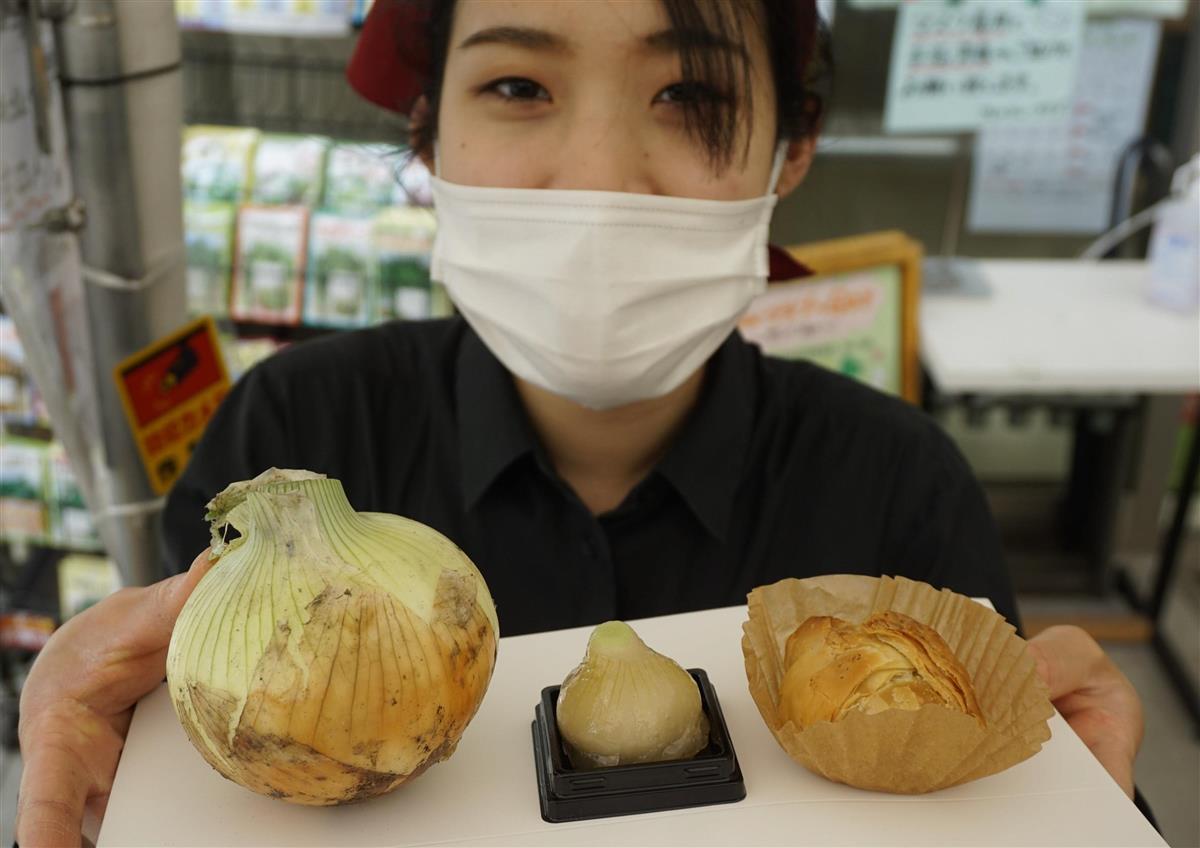 今回の新玉ねぎを使った2商品は当面の間、同市内にある和菓子店「白穂」の2店舗で販売。同店は地元野菜を使った商品化を継続するとしており、第2弾以降の材料として新じゃがを検討しているという。